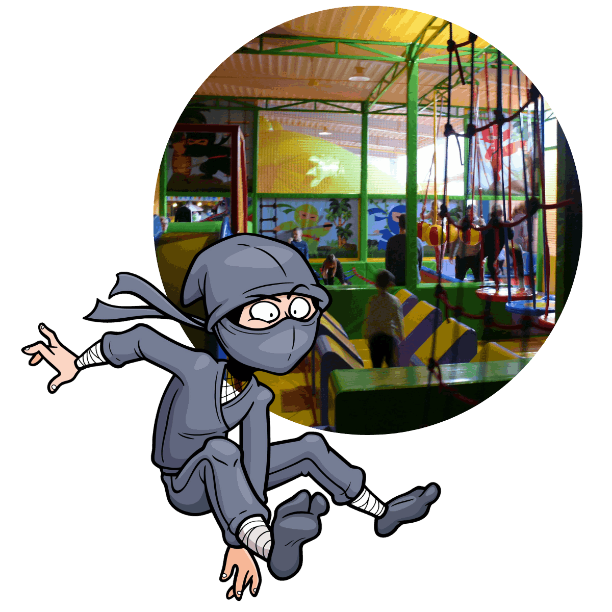 Inspiriert von den berühmten Ninja-Wettbewerben, haben wir einen Hindernisparcours speziell für kleine Helden ab 5 Jahren entworfen. Hier kannst du klettern, hangeln, springen und balancieren, genau wie die großen Ninjas im Fernsehen.